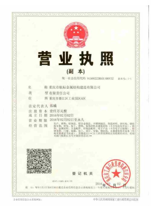 重慶市航標(biāo)金屬結(jié)構(gòu)建造有限公司主要生產(chǎn)加工三大系列產(chǎn)品:第一是建筑鋁幕墻、建筑新型裝飾材料,如鋁單板、雙曲面鋁單板、鋁質(zhì)天花板、造型鋁質(zhì)吊頂板、鋁質(zhì)蜂窩板、多彩保溫隔熱裝飾一體板的整體制作,以及不銹鋼板、鐵板的成型加工及表面處理;第二是工廠標(biāo)準(zhǔn)化研發(fā)制造各種風(fēng)格的輕鋼建筑和輕重鋼結(jié)合建筑,以及其它裝配式建筑,公司引進(jìn)高智能化輕鋼成型加工生產(chǎn)線和專用軟件,集建筑設(shè)計(jì)、鋼結(jié)構(gòu)設(shè)計(jì)、建筑室內(nèi)外裝飾設(shè)計(jì),鋼結(jié)構(gòu)生產(chǎn)加工、鋼結(jié)構(gòu)裝配安裝、建筑物室內(nèi)外裝飾裝修全套服務(wù)于一體??蛻糁恍璞磉_(dá)所需建筑物使用功能意愿,我司即可給出多套設(shè)計(jì)方案供客戶選擇,按照客戶選定的方案進(jìn)行快速、高效、節(jié)能、安全環(huán)保的加工建造。我司推出世界各國不同風(fēng)格、造型各異、全精裝二到三層80——600㎡的輕鋼別墅,從設(shè)計(jì)到交付使用只需要兩個(gè)月左右即可完工;第三是公司配置了目前國內(nèi)先進(jìn)的開平生產(chǎn)線,專業(yè)致力于厚度1.0——6mm,寬度600——2000mm的鋁卷加工、銷售。